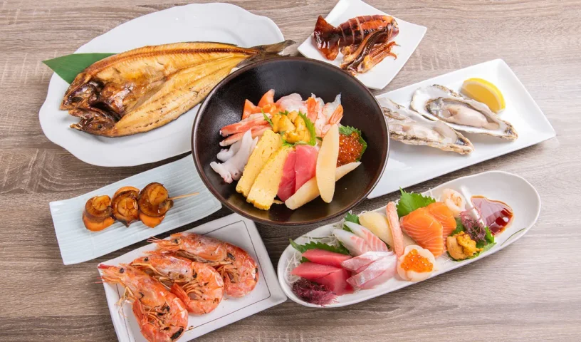 近隣の市場から毎日直送される魚介を使ったお寿司や丼、