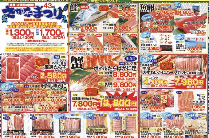 海鮮市場、第43回さかなまつり本日より開催‼️ 年に一度の大売り出し👏 今年もこの時期がやってまいりました❗️ まずは今回の目玉商品をご紹介👀 食べ応...