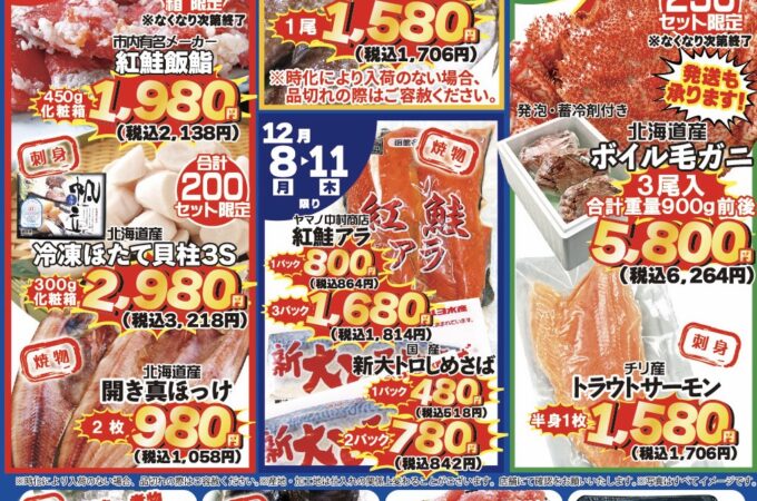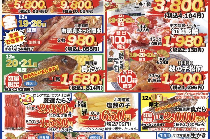 海鮮市場より次回特売のお知らせ📩 次回は12月19日(金)〜12月28日(日)まで❗️ 年末間近❗️ガッチリラストスパート祭やっちゃいます‼️ ⚠️今...