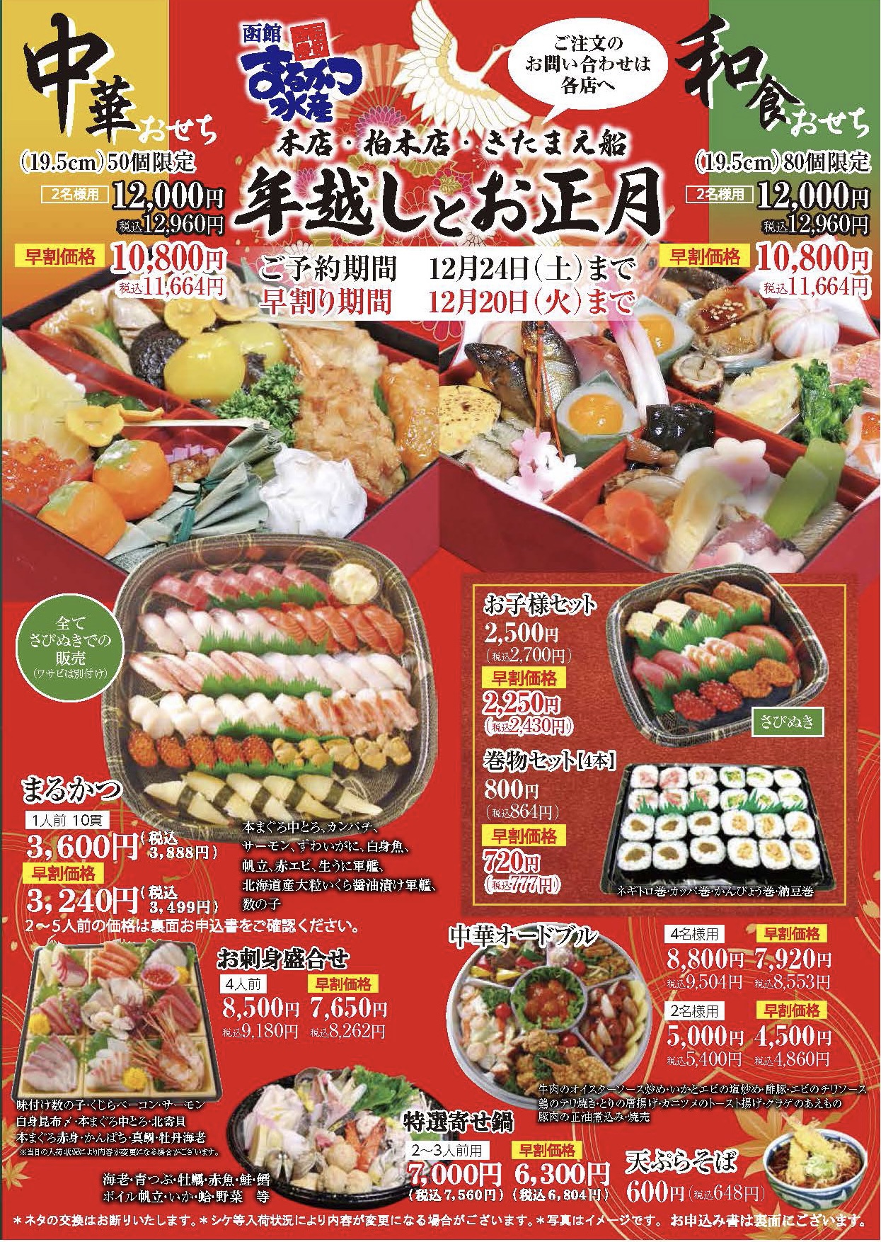 こちらのお寿司やおせちなども早割期間がございます👍