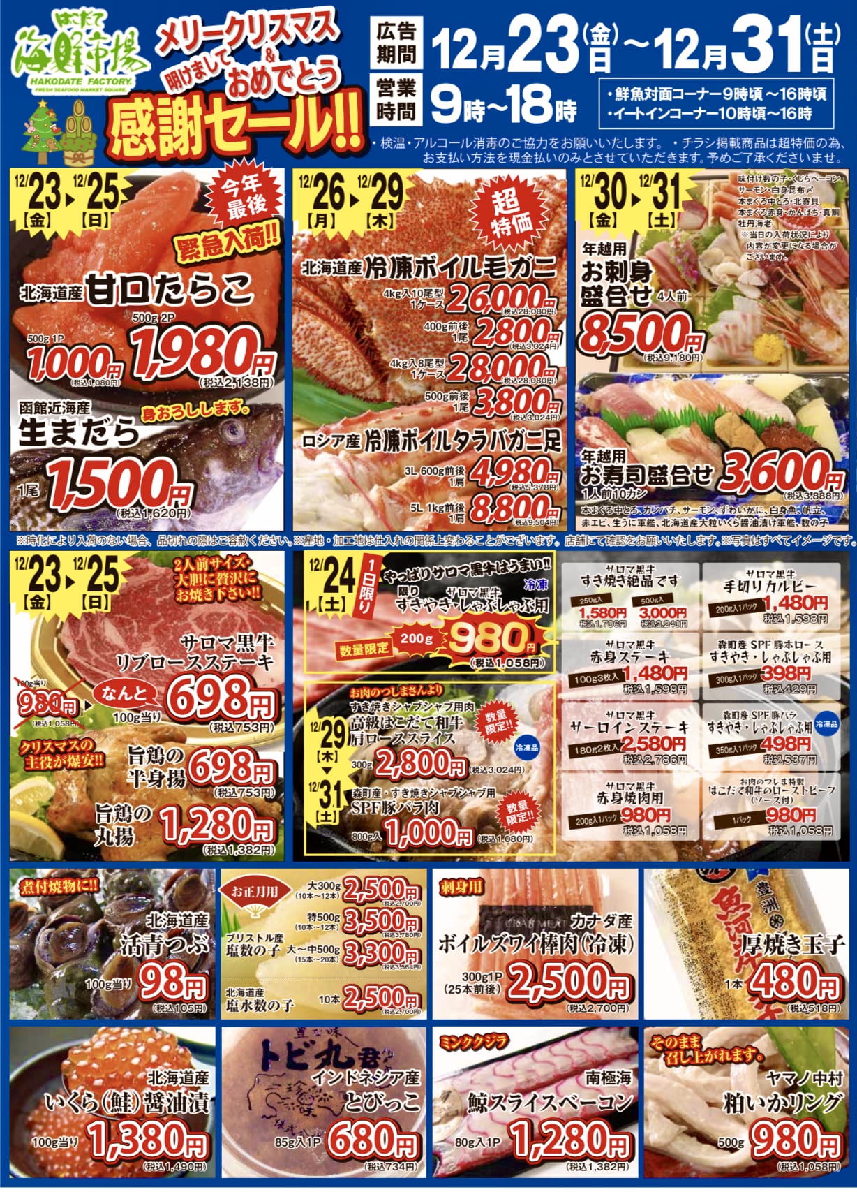 次回は12月23日(金)〜31日(土)!年始の御案内も!