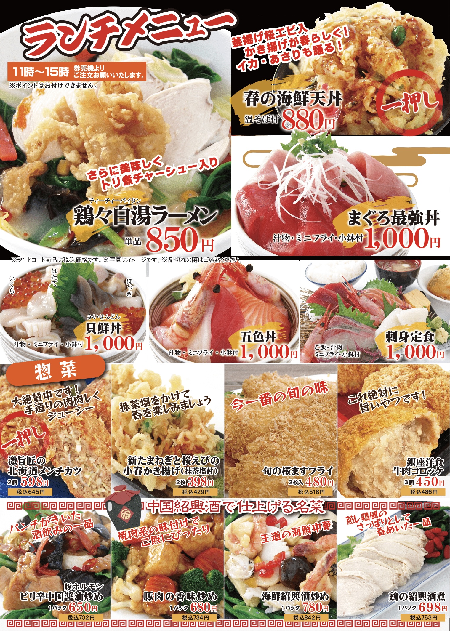 カニやホタテがキラキラの華丼や、春の食べ比べ丼など。