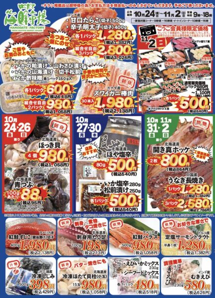 次回特売は10月24日(金)〜11月2日(日)まで!