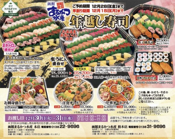 そして今回のチラシの裏面には、クリスマスケーキ&年越し寿司のご案内も🥳