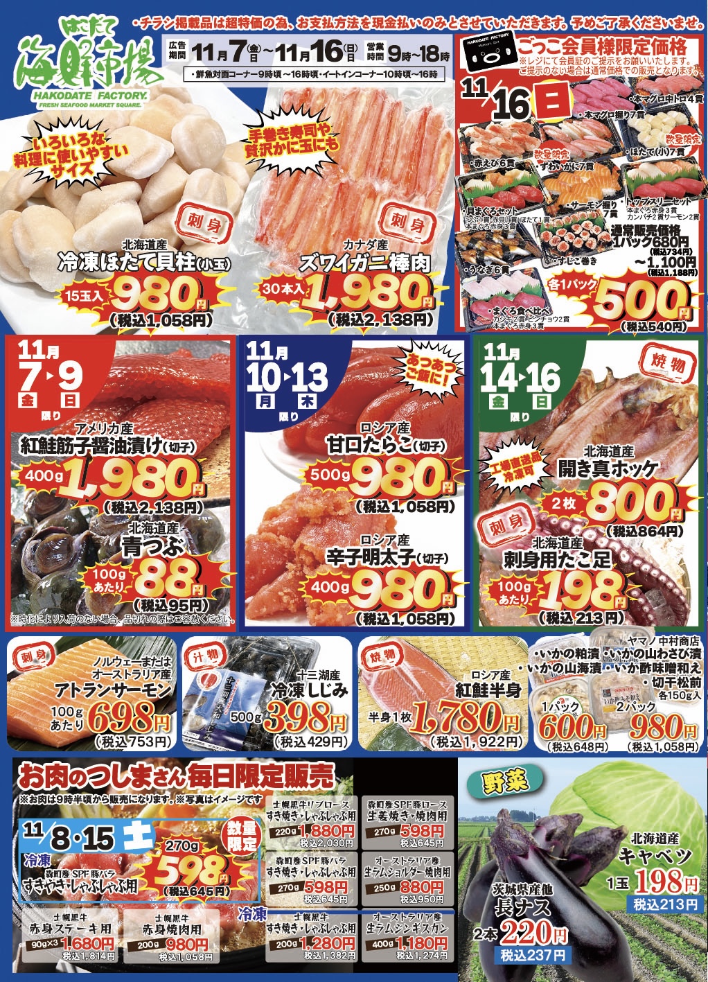 次回特売は11月7日(金)〜11月16日(日)まで!