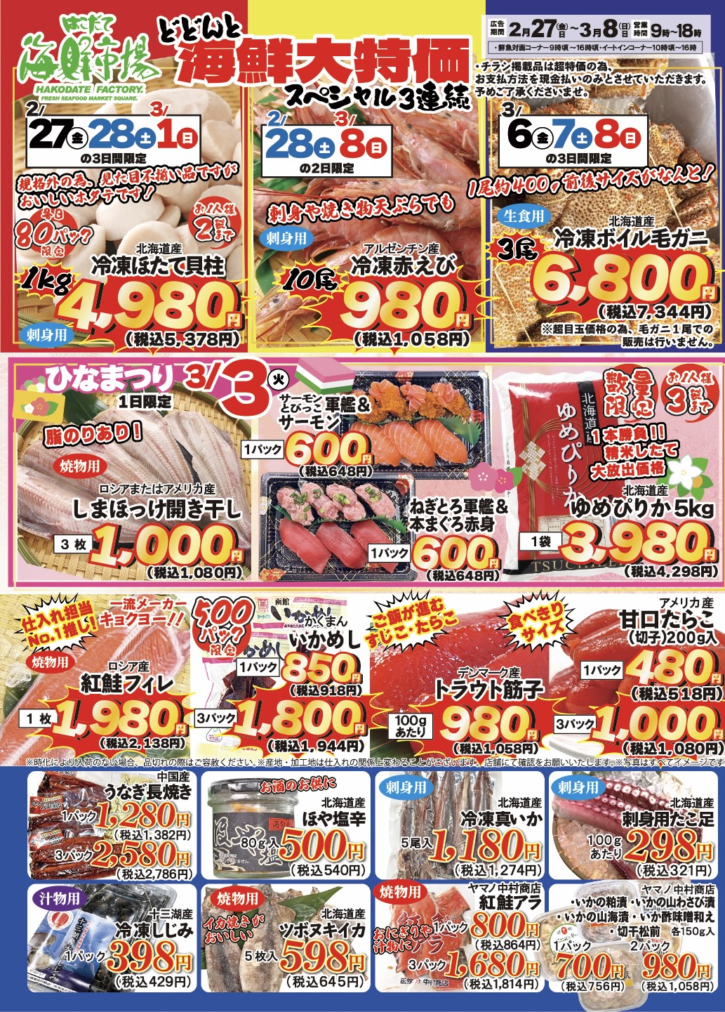 次回特売は2月27日(金)〜3月8日(日)まで!