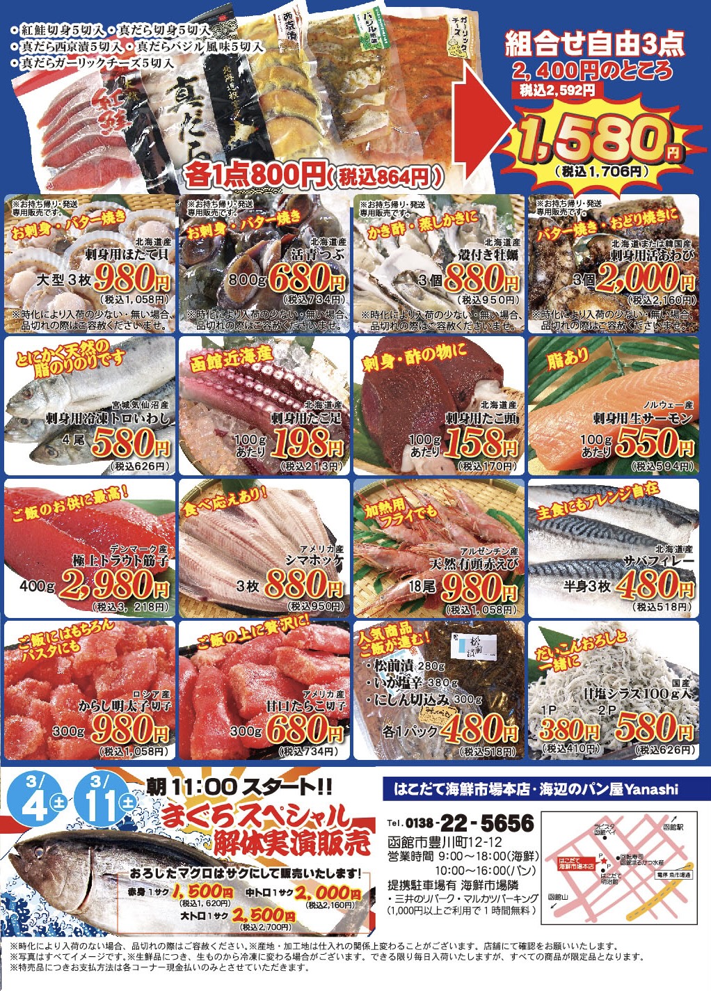 前回人気だった「紅鮭・真鱈の切身、真鱈の各種漬けよりどり3点セット」も継続開催👏