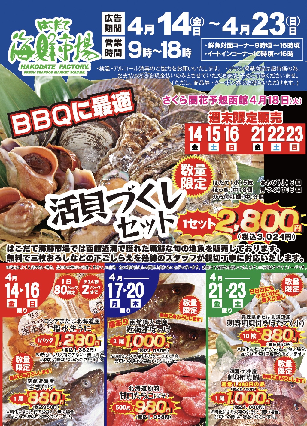 14日(金)からの特売、是非はこだて海鮮市場へ足をお運び下さい🏃💨