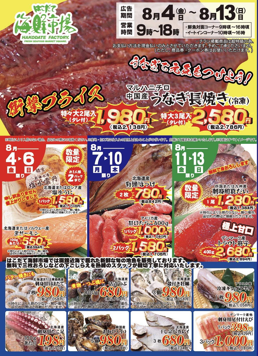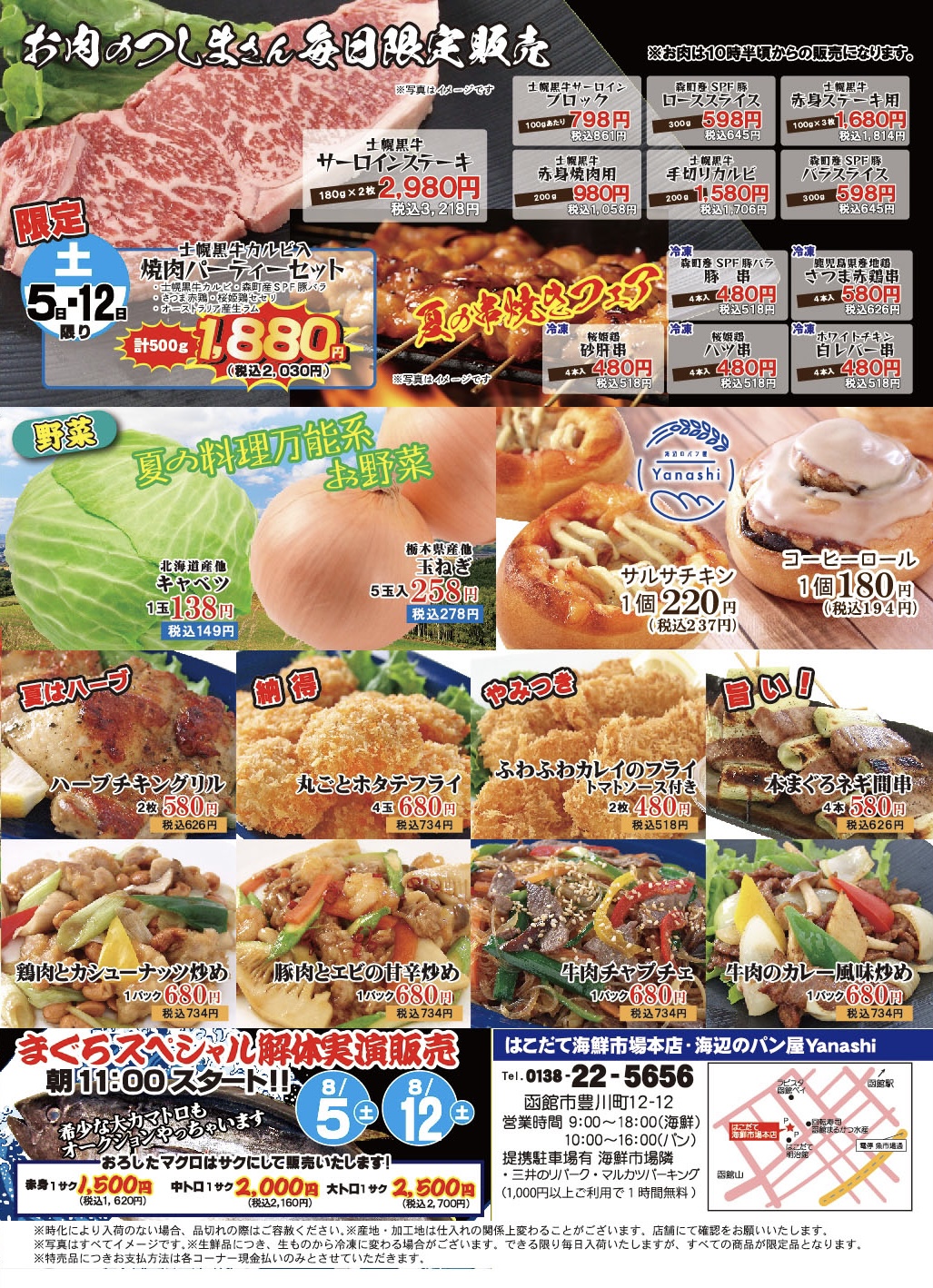 今回も盛り沢山の内容で皆様のお越しをお待ちしております❗️暑さの厳しい中ですが、是非はこだて海鮮市場へお越し下さいませ🙌