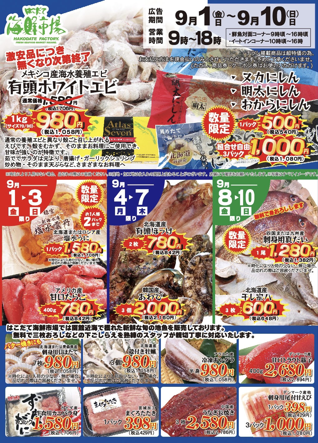 海鮮市場、次回特売は9月1日(金)〜9月10日(日)です❗️