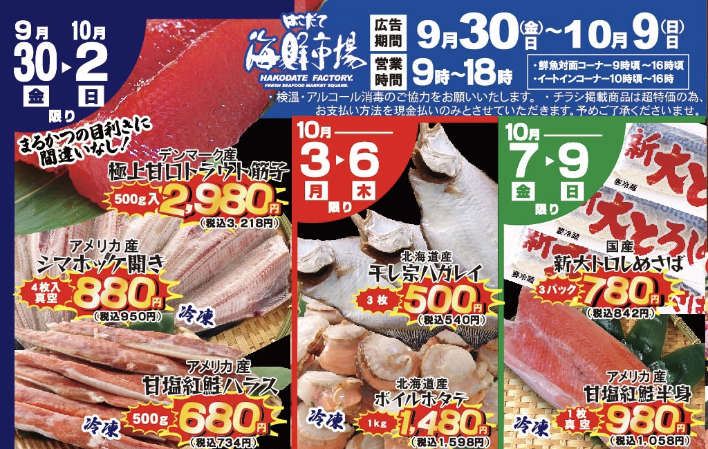 次回の特売は9月30日(金)〜10月9日(日)🙌