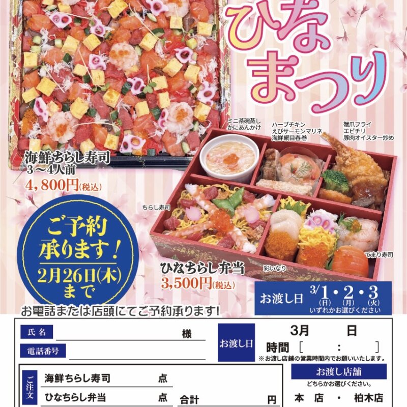 今年もひなまつりを華やかに彩るちらし寿司が登場です☺️