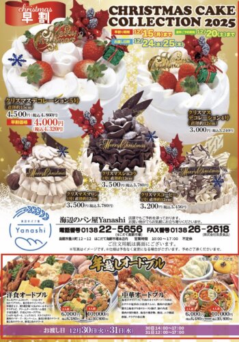 海辺のパン屋Yanashiよりクリスマスケーキのご案内🎄